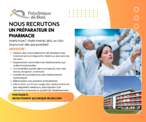 💊 PrĂ©parateur(trice) en pharmacie : la Polyclinique de Blois recrute !